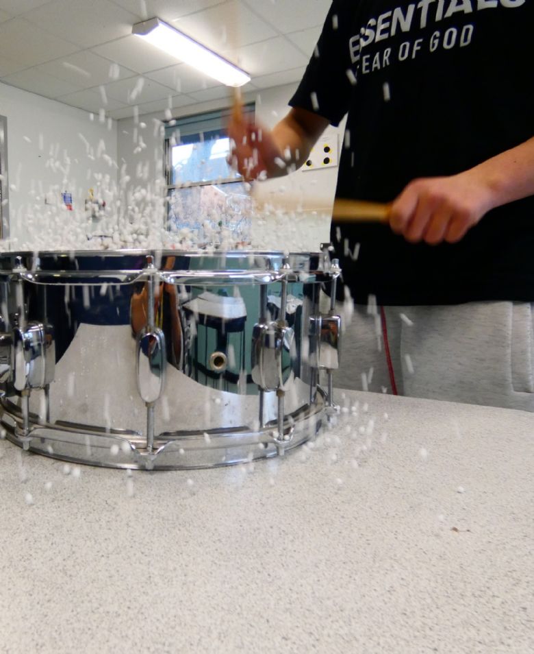 While practising his drumming skills, Lucas decided to explore how sound vibrations impact other objects.